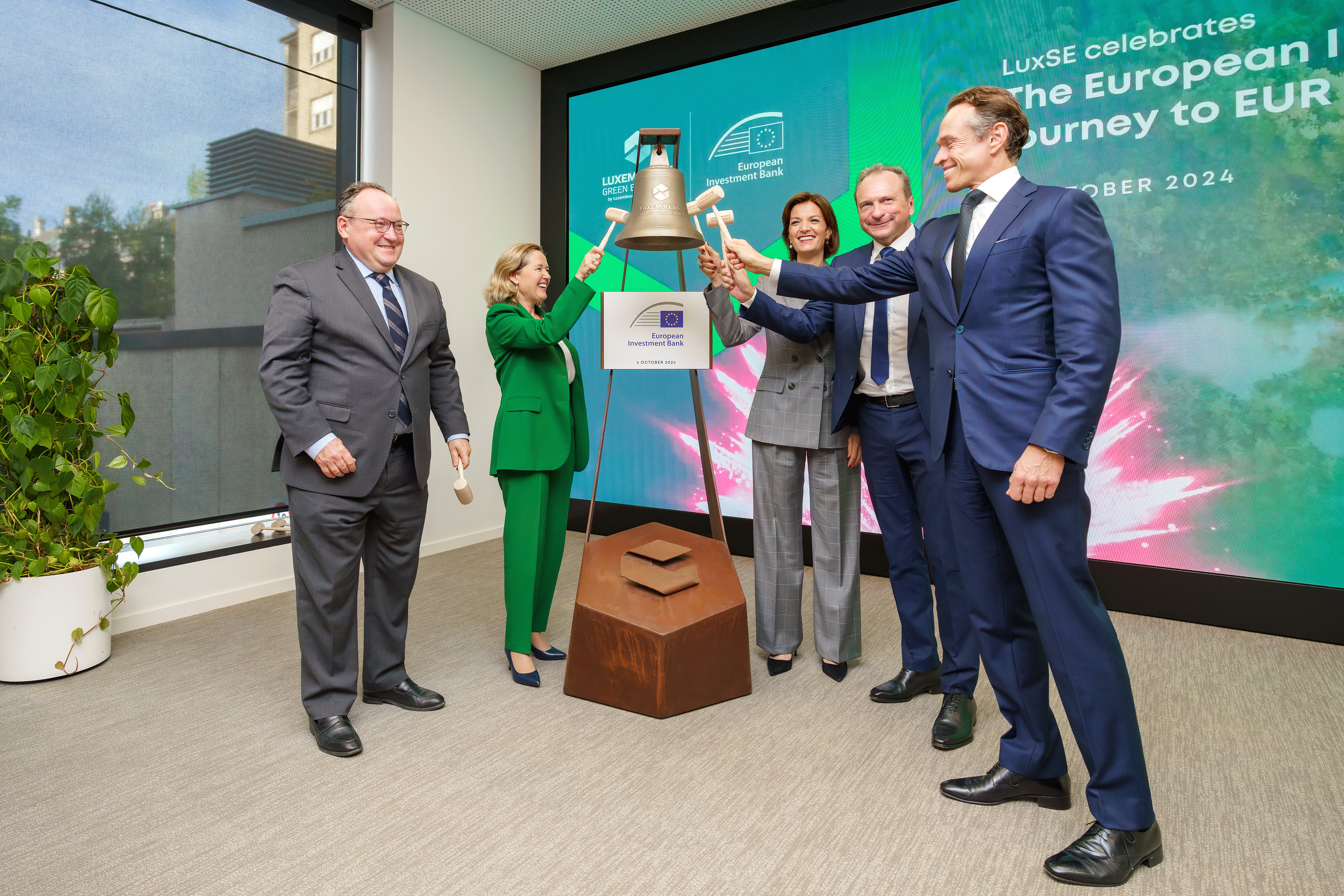 Nadia Calviño, president of the European Investment Bank, visited the Luxembourg Stock Exchange (LuxSE) for the first time today to mark the milestone in the EIB’s pioneering contribution to sustainable finance. She also discussed the future of the green bond market in the context of the EU agendas for Sustainable Finance and the Savings and Investment Union.In the presence of Luxembourg Minister of Finance Gilles Roth, the EIB and LuxSE put the spotlight on the EIB’s unique contribution to bringing more clarity to sustainable finance and the role of the broader financial ecosystem in Luxembourg in advancing sustainable investment.
